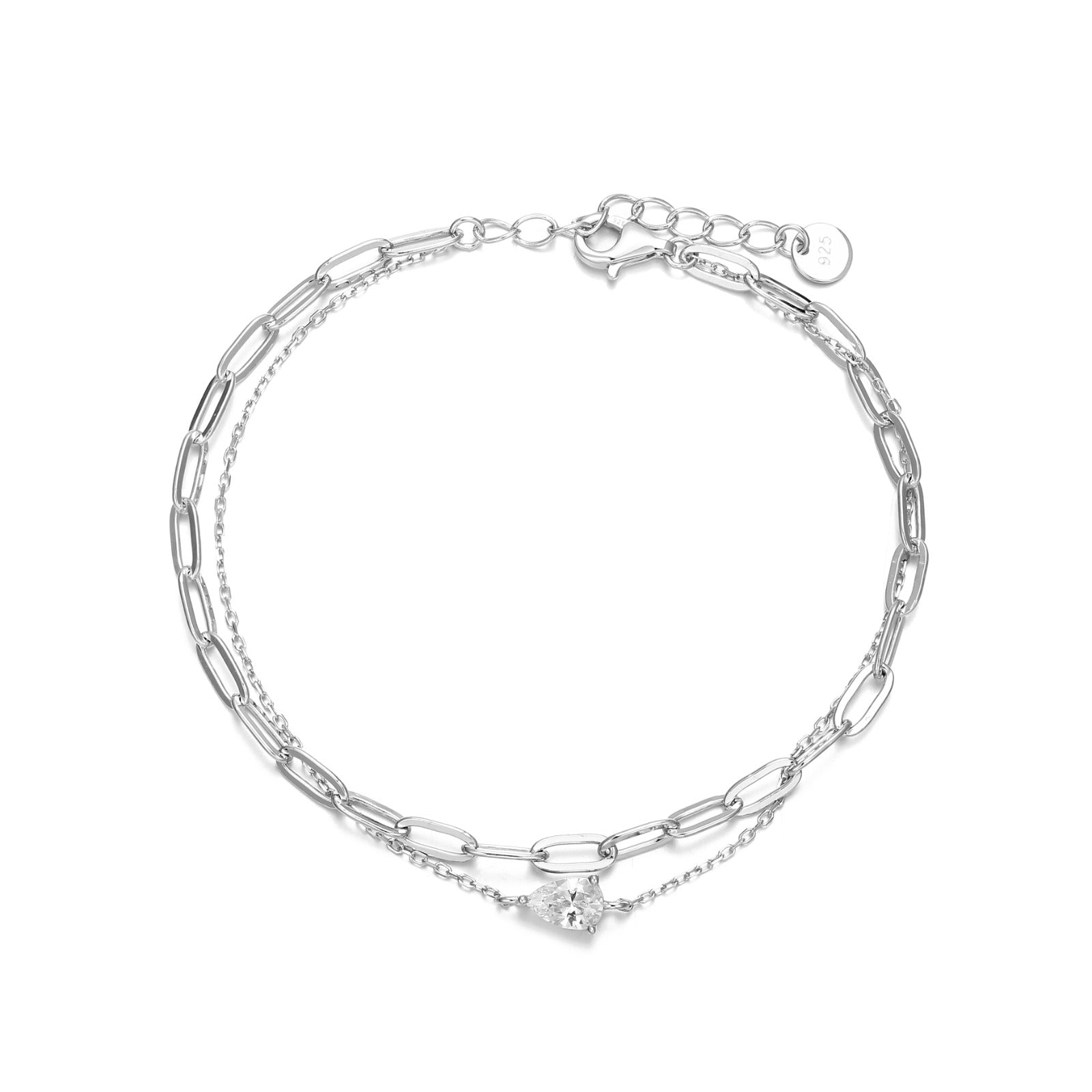 Delicate, modern, and beautifully layered, the Double Layer Bracelet is designed to bring effortless elegance to your everyday look. Featuring a refined combination of a paperclip chain and a cable chain, it’s finished with a subtle tear-drop stone that adds a soft, feminine sparkle.