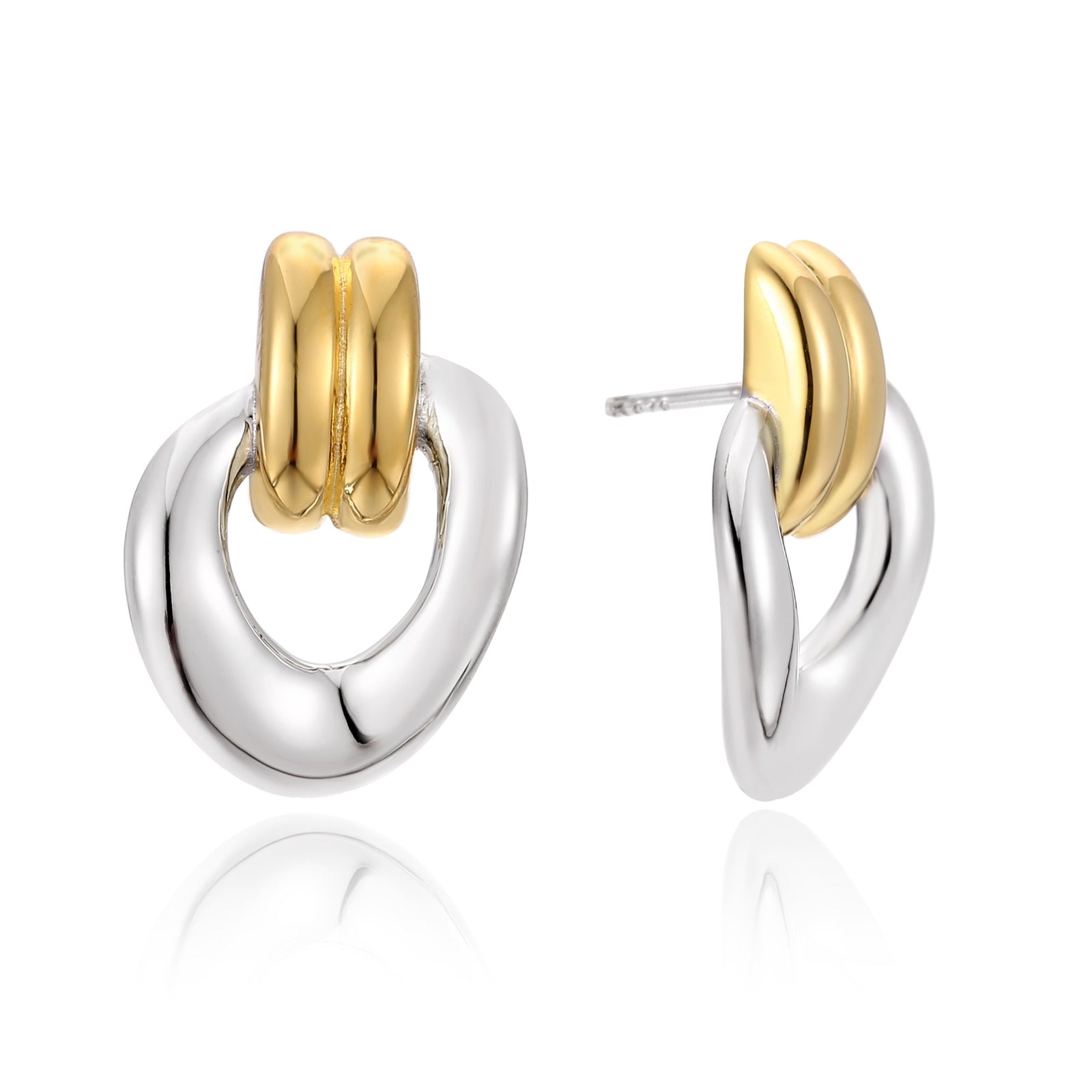 Buckle Statement Earrings Two Tone