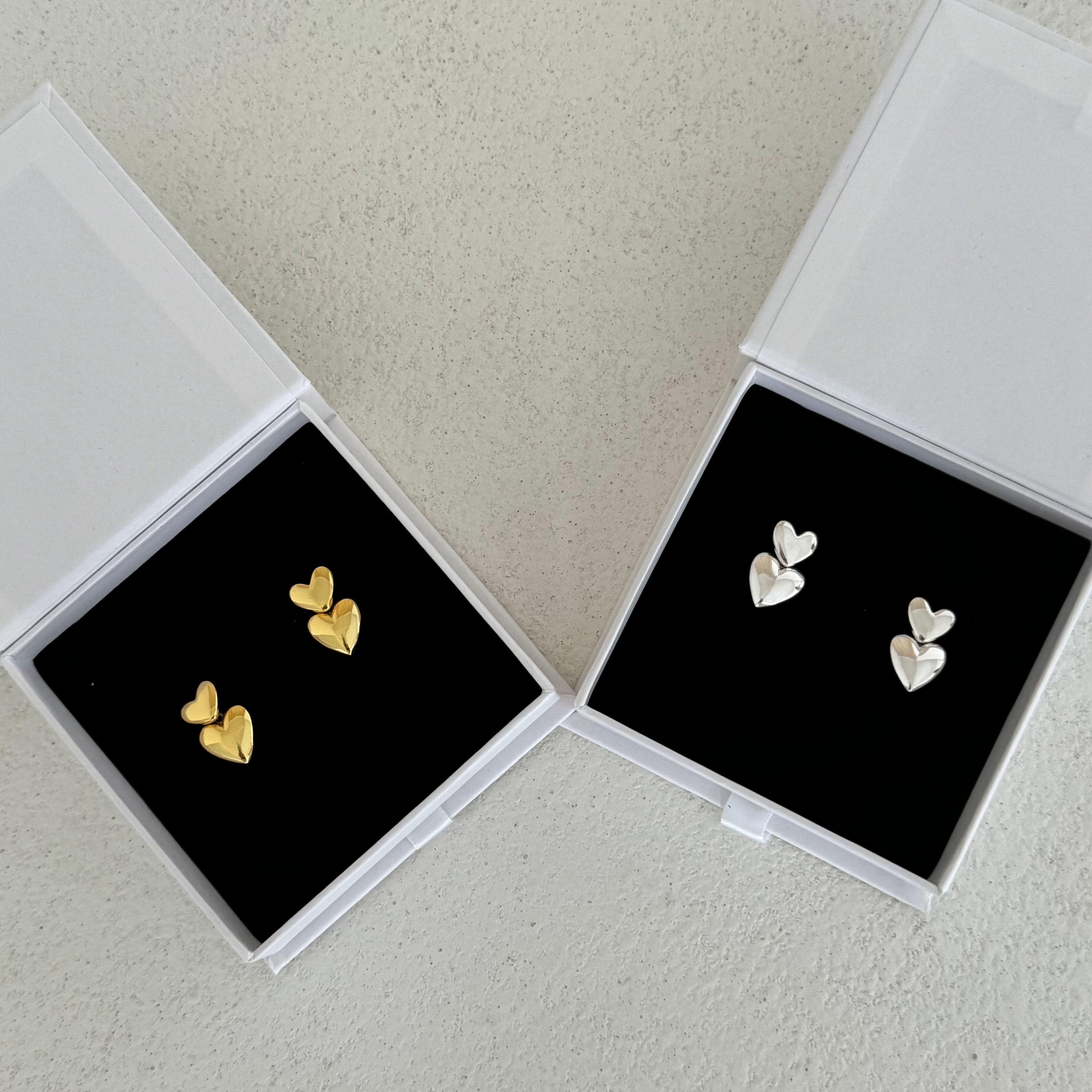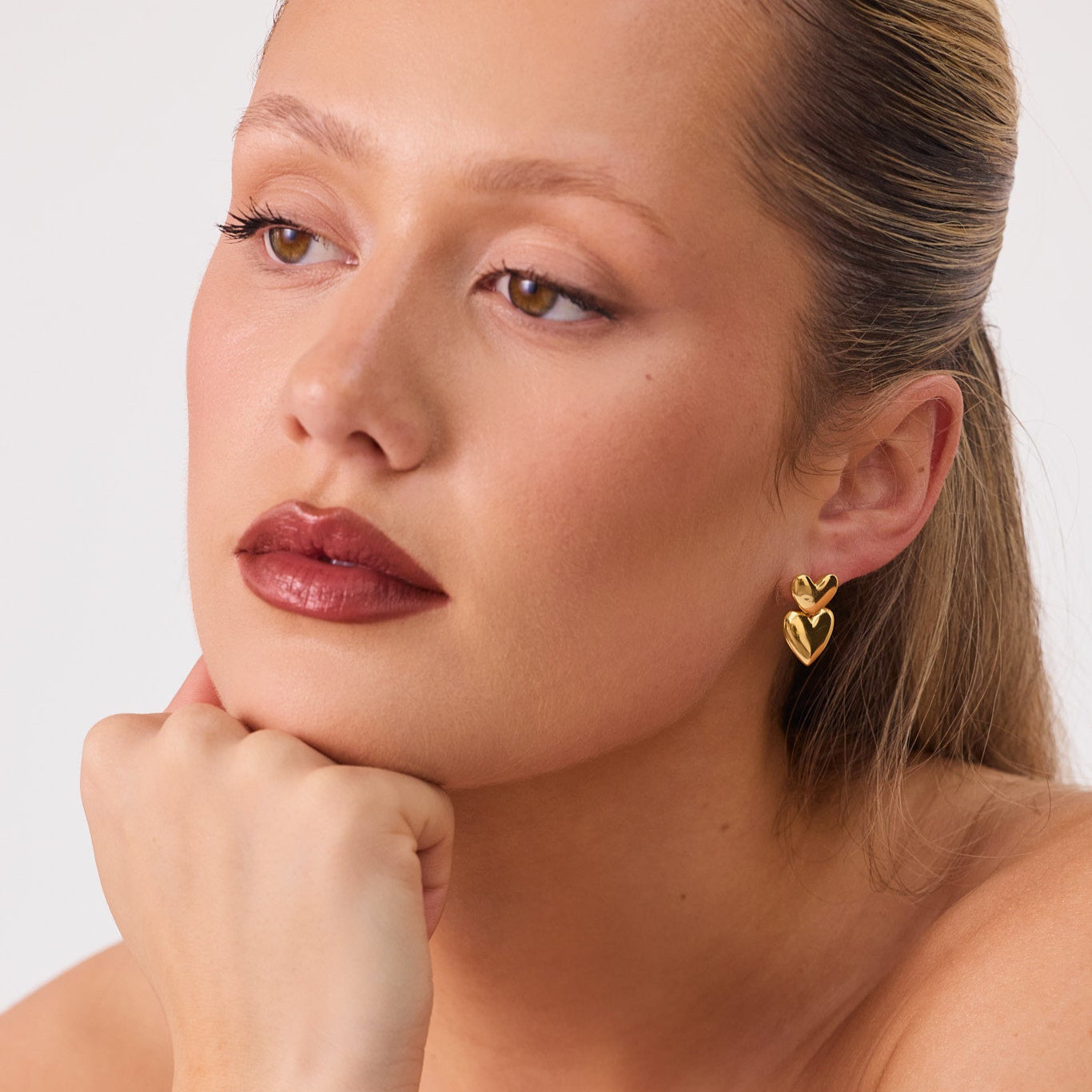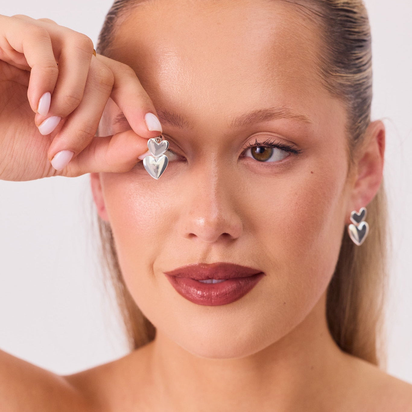 Our Violet Earrings are a must have for your collection! A double heart drop earring.